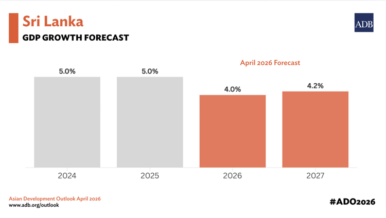 2024 සහ 2025 වසරවල දී අඛණ්ඩව අත්පත් කර ගනු ලැබූ 5.0%ක ශක්තිමත් වර්ධනයන්ගෙන් පසු 2026 වසරේ දී ශ්රී ලංකා ආර්ථිකය 4.0%ක