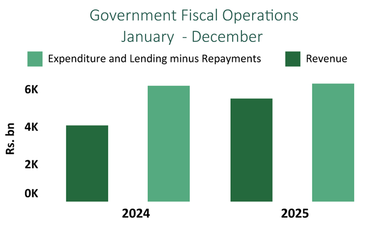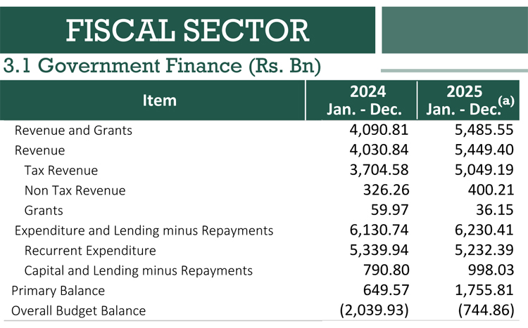 2025 වසරේ දී රජයේ සමස්ත ආදායම රු. බිලියන 5,485.55 ක් දක්වා 34%කින් ඉහළ ගොස් තිබුණු අතර එහිදී බදු ආදායම රු. බිලියන 4,030.84 සිට රු. බිලියන 5,449.40ක් දක්වා 35%ක සුවිශේෂී ලෙස ඉහළ ගොස් තිබේ.
